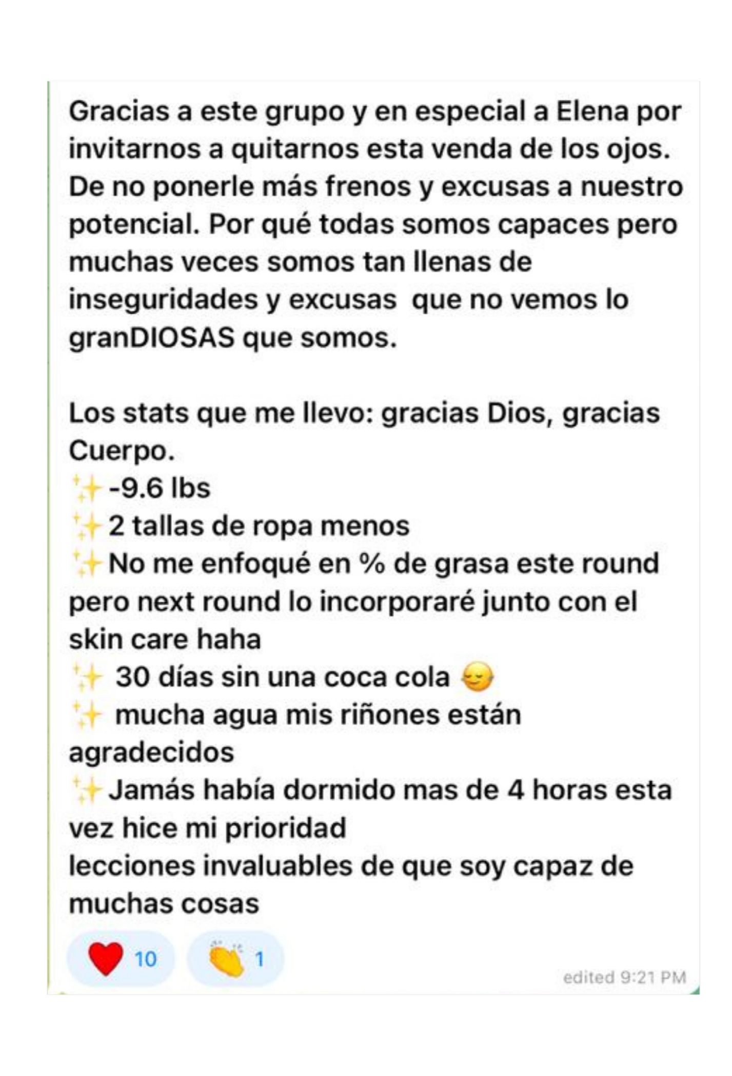 1 llamada en vivo grupal con Elena para cerrar el reto.